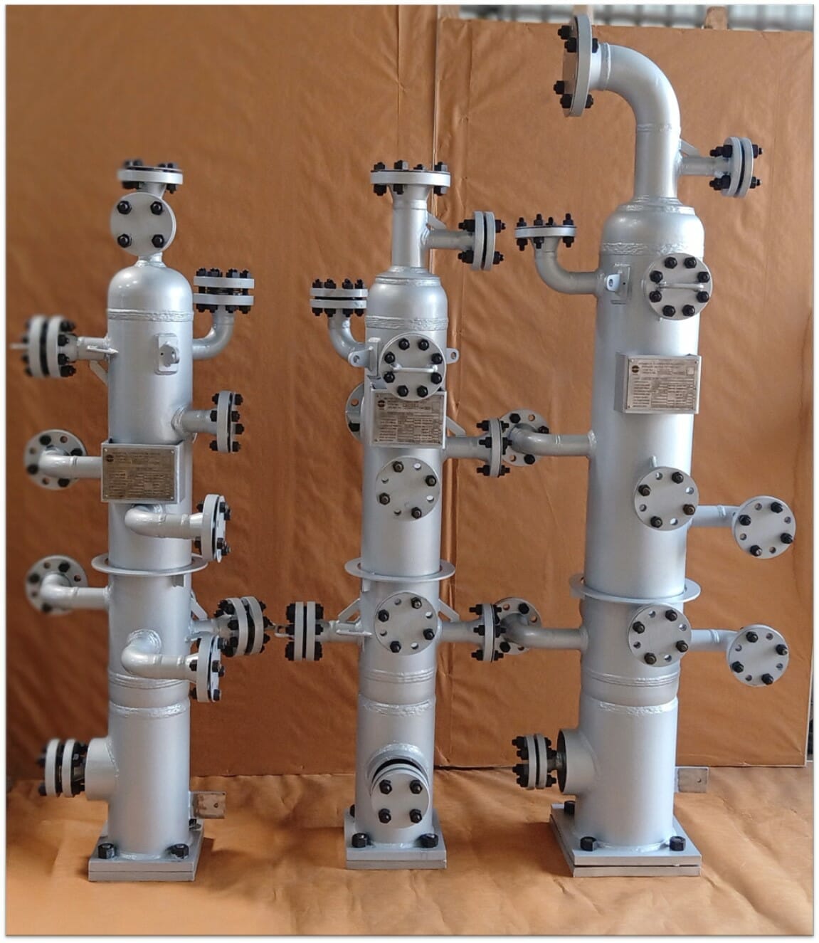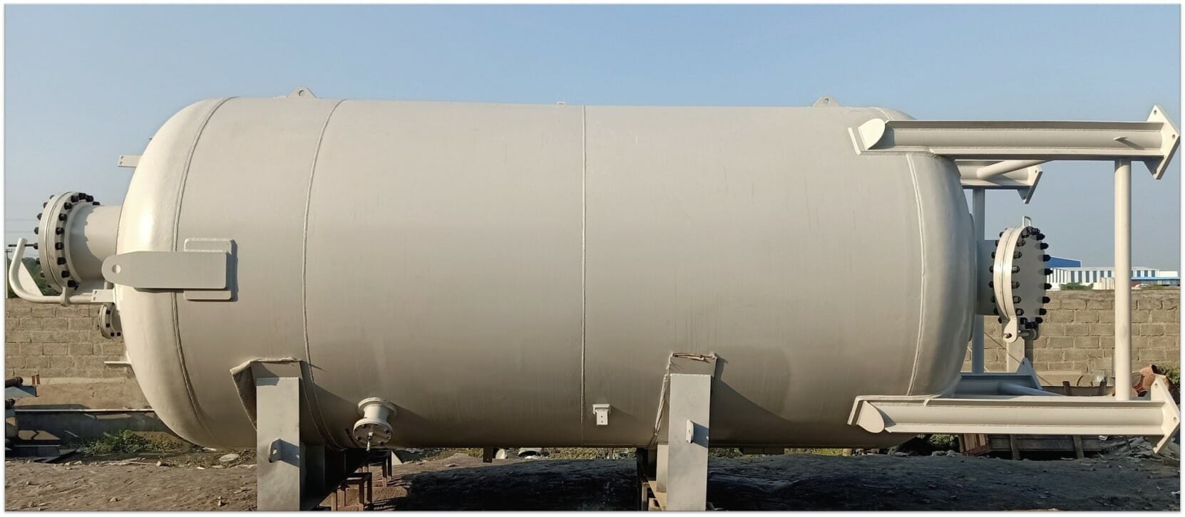 Sungov offers designing and manufacturing of a pressure vessel or tank to several international standards like ASME Boiler and Pressure Vessel Code (BPVC) Section VIII Division 1, API 510, EN13445 and others. Sungov can also offer National Board (NB) registration of ASME Code (U) Stamped vessels. Sungov has experience in manufacturing vessels from pressure as low as 1 barg to as high as 450 barg. Size range manufactured is from 12mm diameter to 3500mm diameter. Materials handled are carbon steel, low temperature carbon steel, austenitic stainless steel, duplex stainless steel and nickel alloys. Typical construction is cylindrical shell with ellipsoidal heads, cylindrical shell with bolted flanged heads and spherical shells. Sungov has the engineering strength to work on other custom designs too. Sungov has licensed software PV Elite (from Hexagon PPM) for routine pressure vessel design. In addition to this, for shapes/construction that cannot be easily covered by Code of construction, Sungov can possesses licensed software for Finite Element Analyses and other stress analyses.